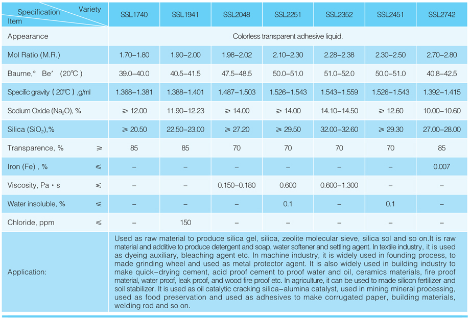 Standard compliance: GB/T 4209-2008"IndustrialSodium Silicate", Enterprise Standard Q-PG/ll-02-06-J"Industrial Sodium Silicate".